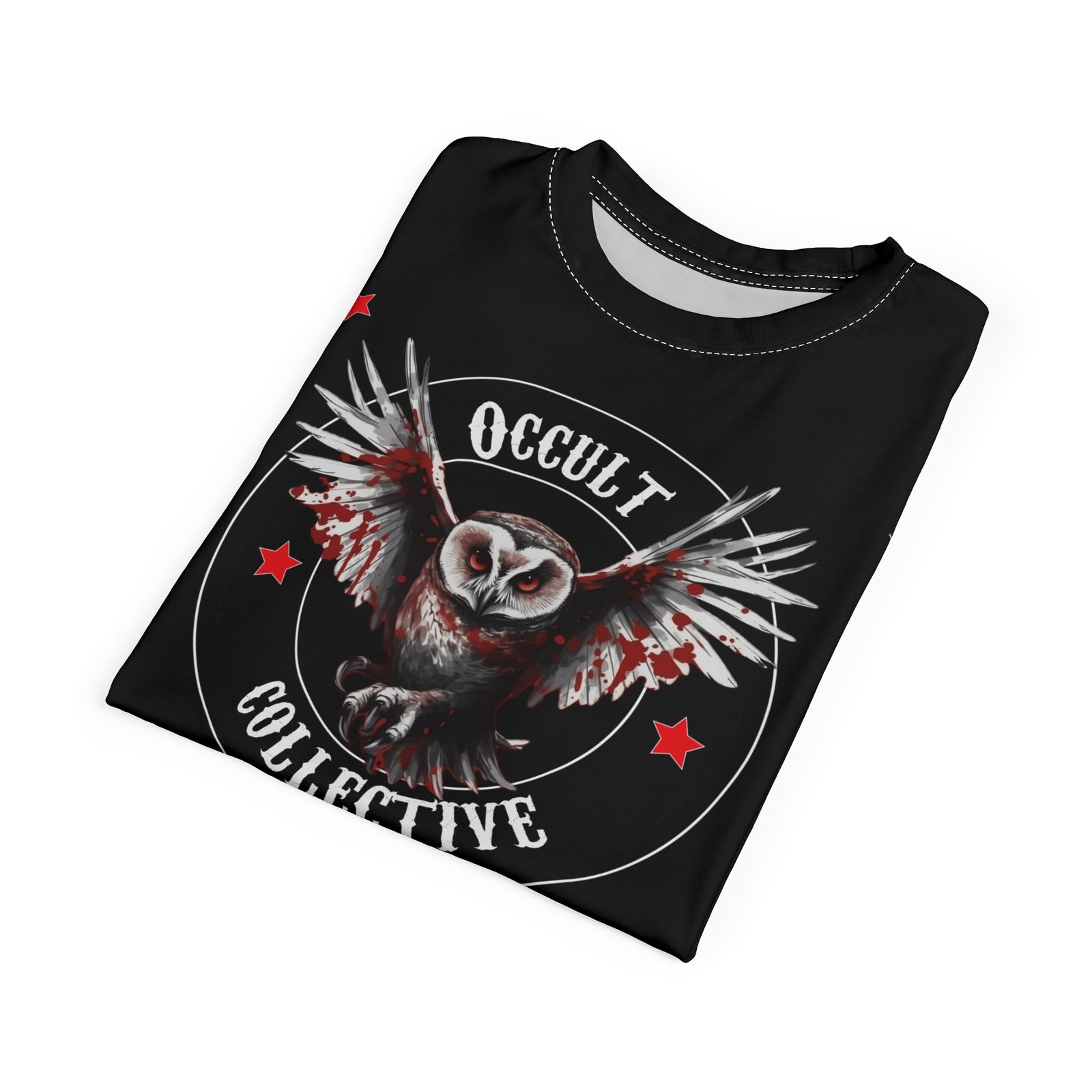 A Tee featuring an Owl flying through the logo ellipse and font design. This comfortable and durable shirt is perfect for everyday wear, adding a touch of whimsy to your outfit. Ideal for those who appreciate unique and eye-catching designs, this Tee can be worn casually or dressed up for a fun night out. Perfect for anyone looking to express their individual style. Ideal for birthdays, casual and Fridays.