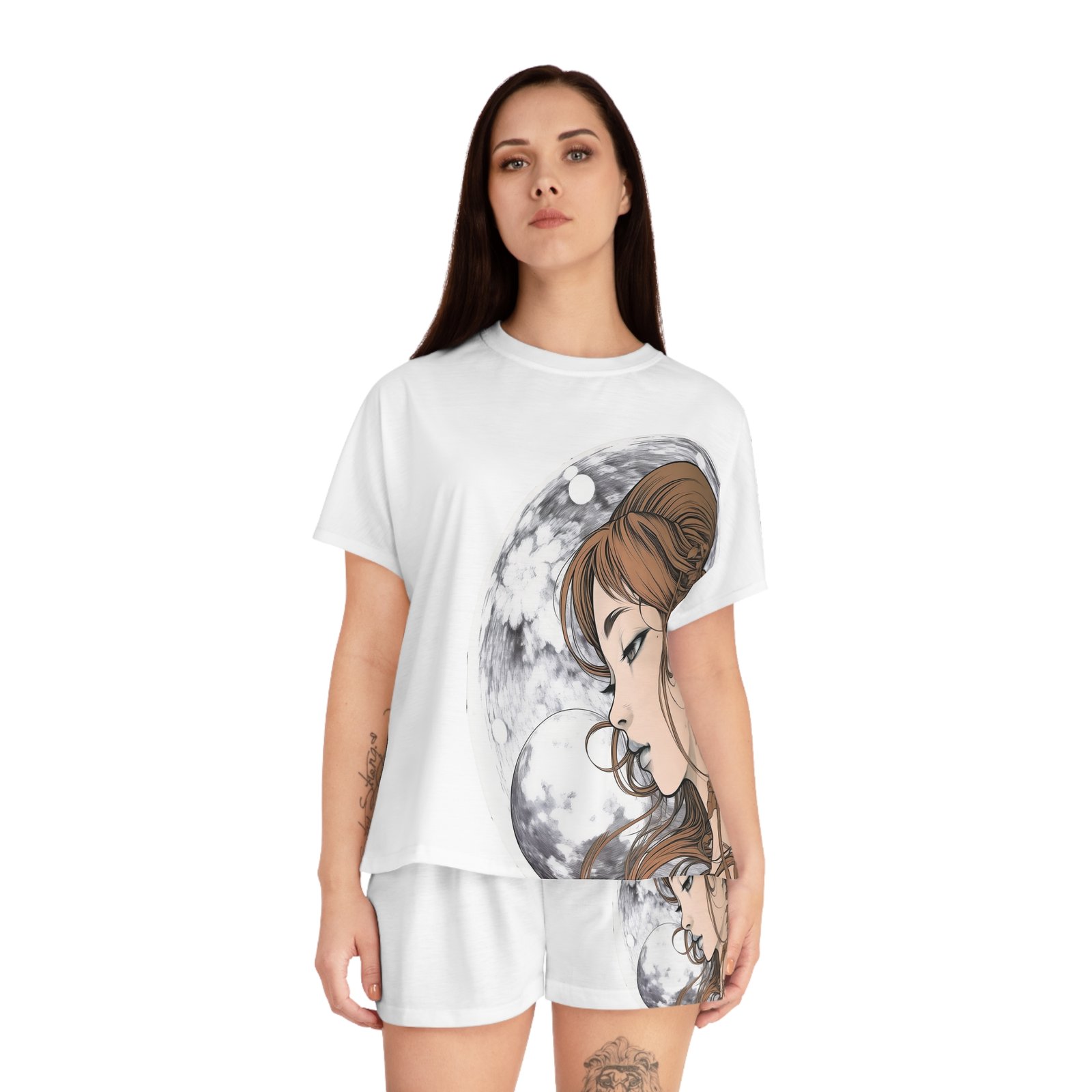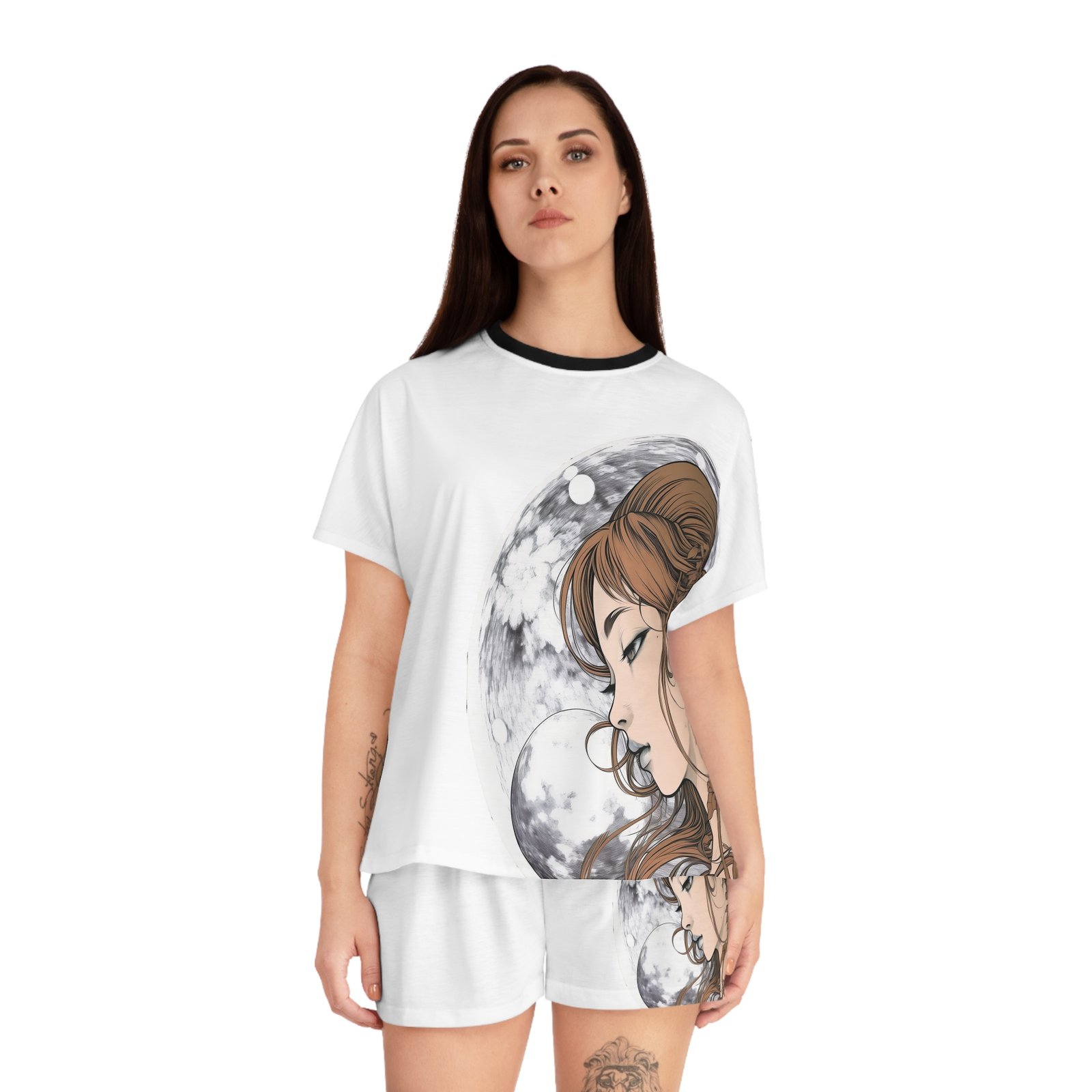 This Women’s Pajama Set features a design of a woman’s profile standing in front of the moon, giving off a serene and mystical vibe. Perfect for women looking for comfortable and stylish sleepwear. Ideal for night-time relaxation, lounging, and sleepovers. Great for celebrating birthdays, holidays, or simply treating yourself.